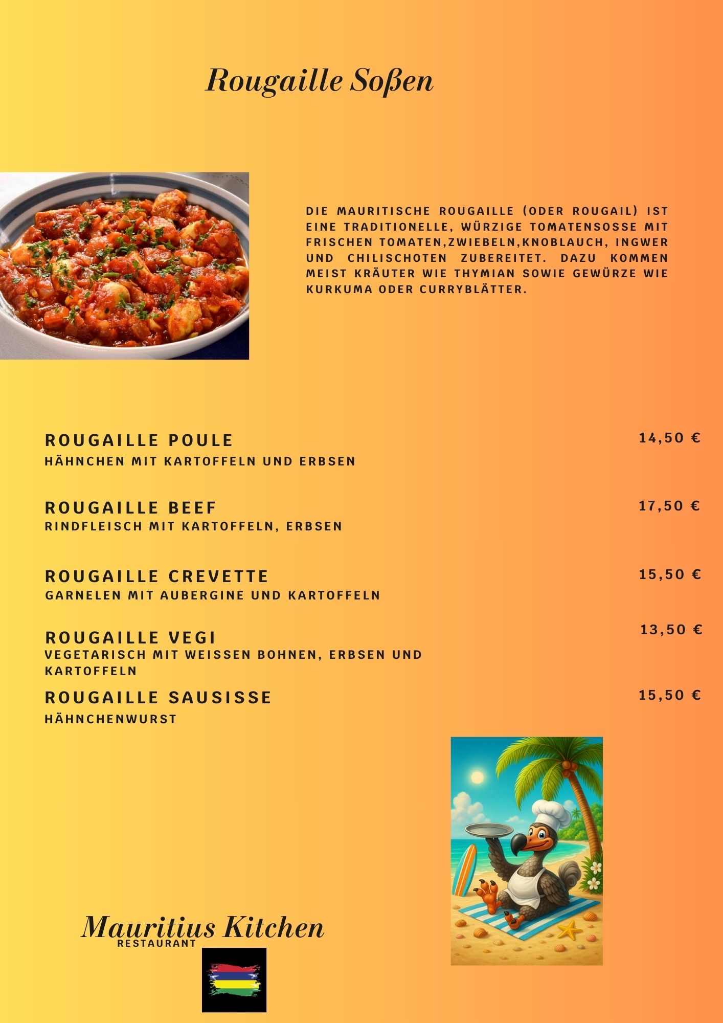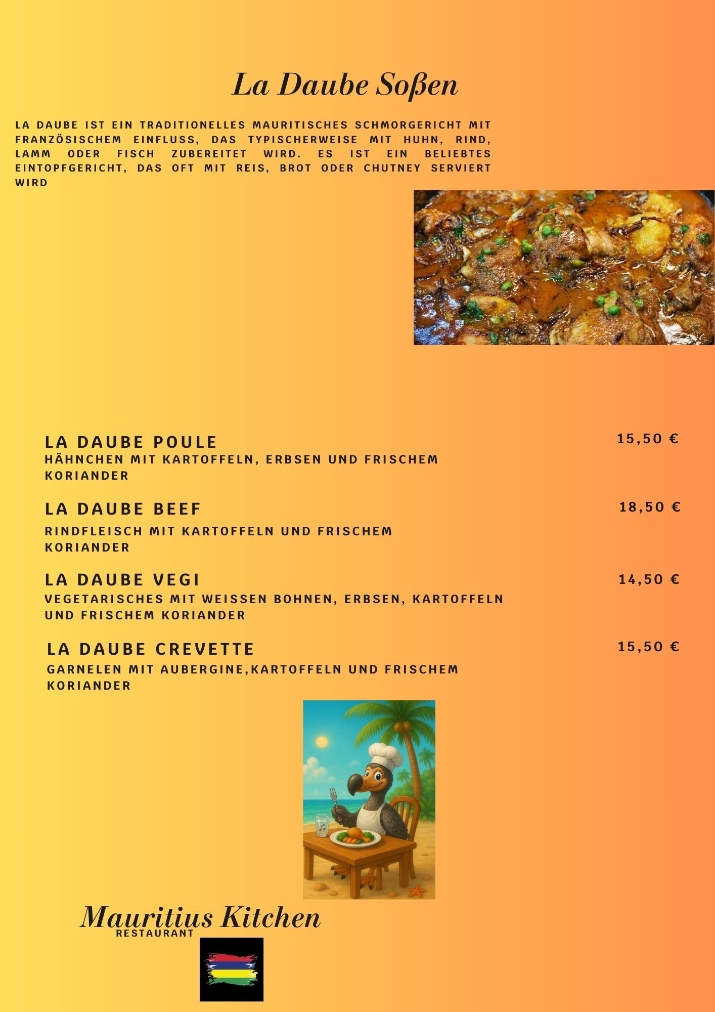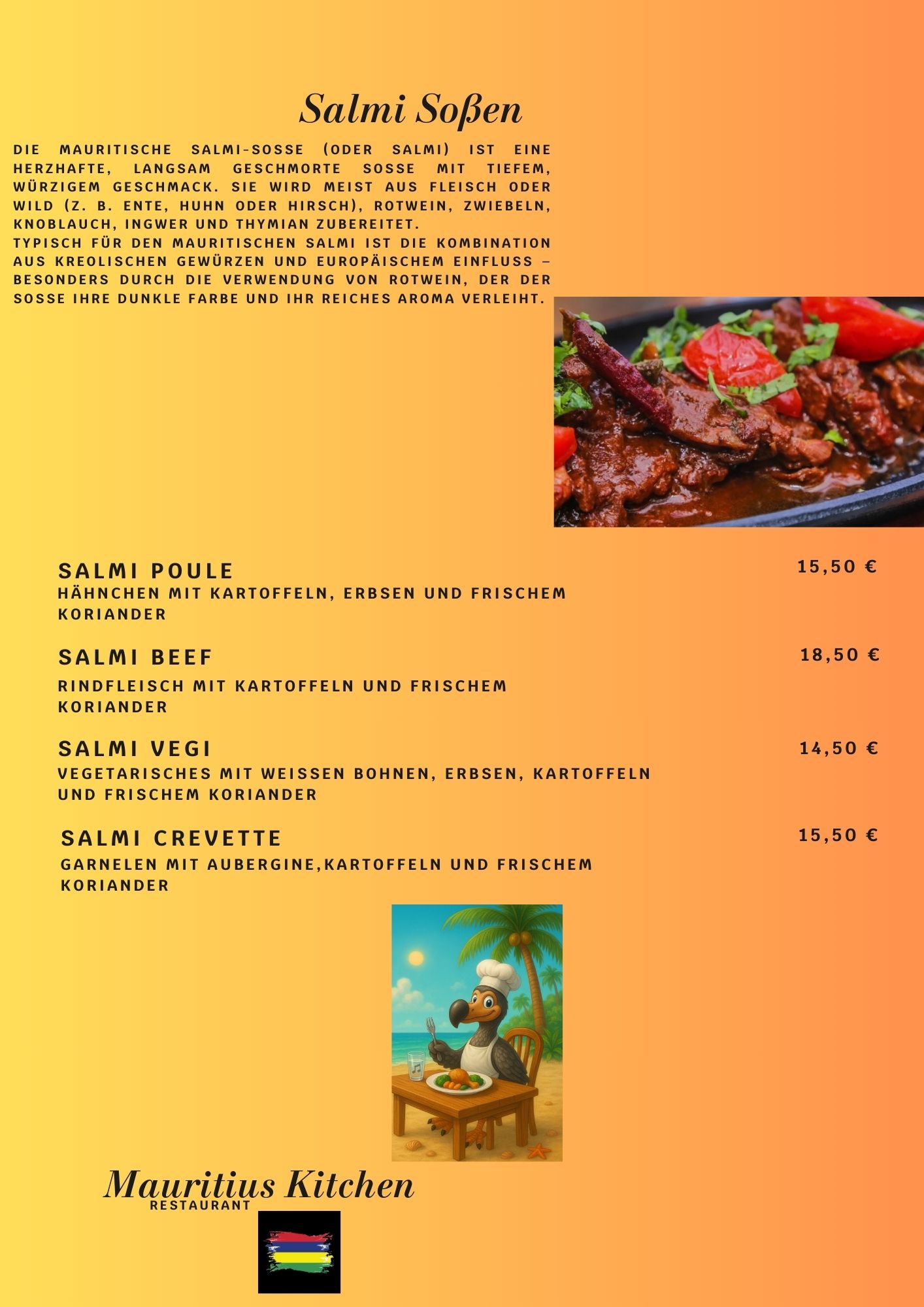 Speisekarte Auslieferung